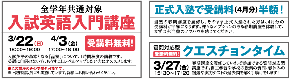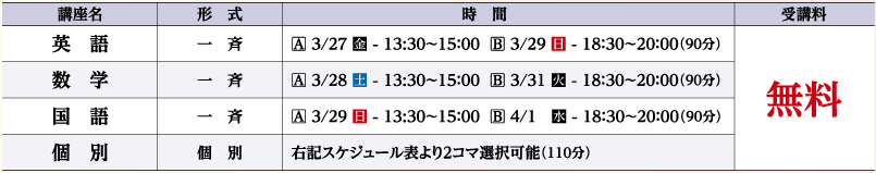 ※春期講習に関しても、無料体験できます。
