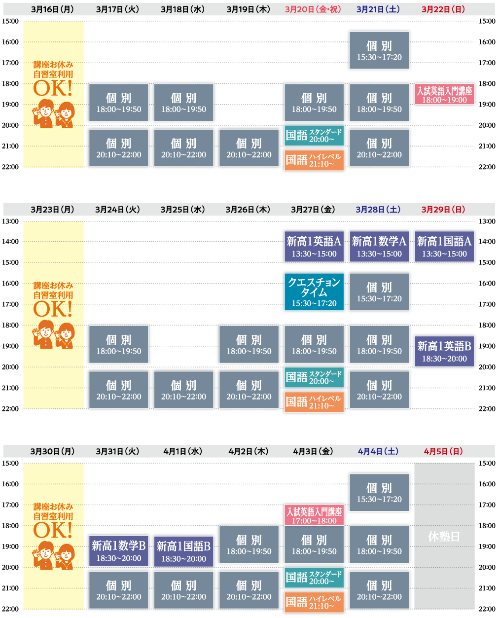 ●通常講座は4月7日(火)からです。