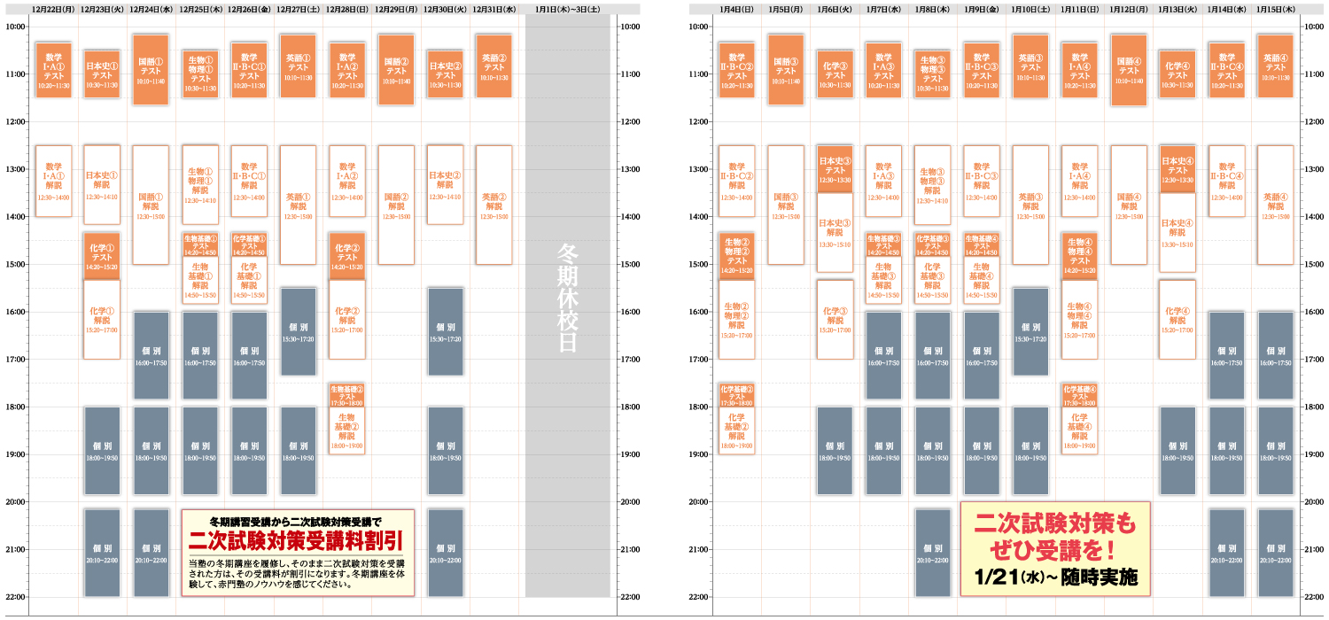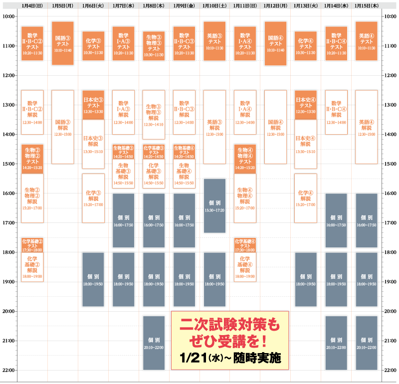 ※物理基礎・地学基礎・地理・世界史・倫理・政治経済・情報の日程はお問合せください。