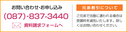 ※ご兄弟で当塾に通われる場合は受講料を減免いたします。詳しくはお問合せください。